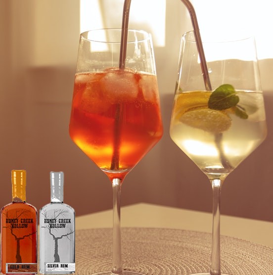 Honey Creek Hollow is proud to offer silver, gold, and spiced rum. Made from the finest sugar cane molasses and distilled five times, enjoy our rum in a frozen daiquiri, in your favorite cocktail, or sip it neat.